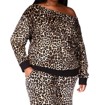 Blusa feminina Michael Kors com estampa animal e ombros de fora em veludo marrom, tamanho 1X