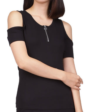Blusa feminina Michael Kors com decote e ombro vazado, preta, tamanho pequeno e pequeno