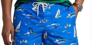 Calção de banho masculino Polo Ralph Lauren com estampa de poliéster reciclado, azul, tamanho XX-G