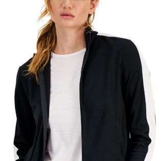 ID Ideology Jaqueta de corrida feminina com zíper e manga listrada, preta, tamanho extragrande