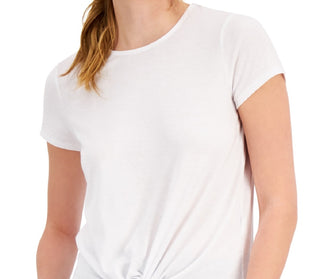 Camiseta feminina ID Ideology com nó frontal, branca, tamanho pequeno