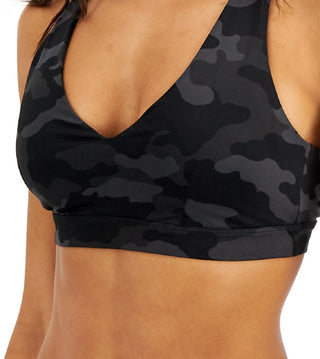 Sutiã esportivo feminino ID Ideology com estampa camuflada de baixo impacto, preto, tamanho grande