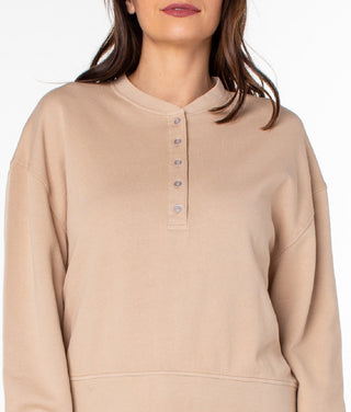 Earnest Sewn French Terry Henley Top feminino marrom tamanho médio