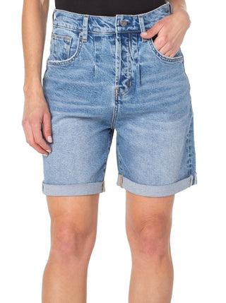 Shorts jeans femininos Earnest Sewn com pregas e punhos, azul, tamanho 27