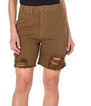 Shorts femininos Earnest Sewn com bainha desfiada e corte midi, verde, tamanho 32