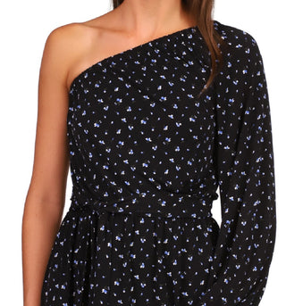Michael Kors Blusa Túnica Feminina com Um Ombro e Cintura Amarrada Azul Tamanho P