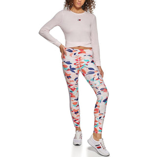 Tommy Hilfiger Shorts de ciclismo de compressão de cintura alta estampado feminino, azul, tamanho XG