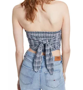 Tommy Jeans feminino xadrez smocked cachecol bandeau top azul tamanho grande