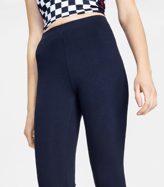 Calça legging feminina Tommy Jeans com estampa de logotipo lateral, azul, tamanho X-S