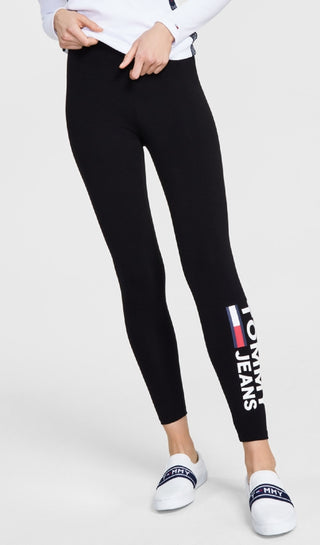 Calça legging feminina Tommy Jeans com estampa de logotipo lateral, preta, tamanho médio