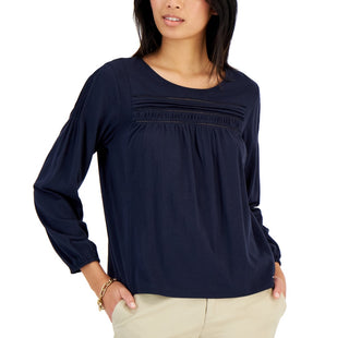 Tommy Hilfiger Top Feminino Pintucked Azul Tamanho Grande