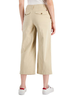Calça feminina Tommy Hilfiger com bolso e logo, perna larga, marrom, tamanho 8