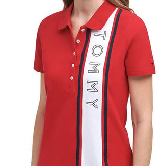 Polo Tommy Hilfiger com logotipo feminino, vermelho, tamanho grande