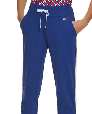 Calça de moletom feminina Tommy Hilfiger cintura alta com listras laterais, azul, tamanho médio