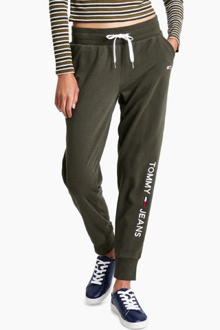 Calça jogger feminina Tommy Jeans com logo linear verde, tamanho grande