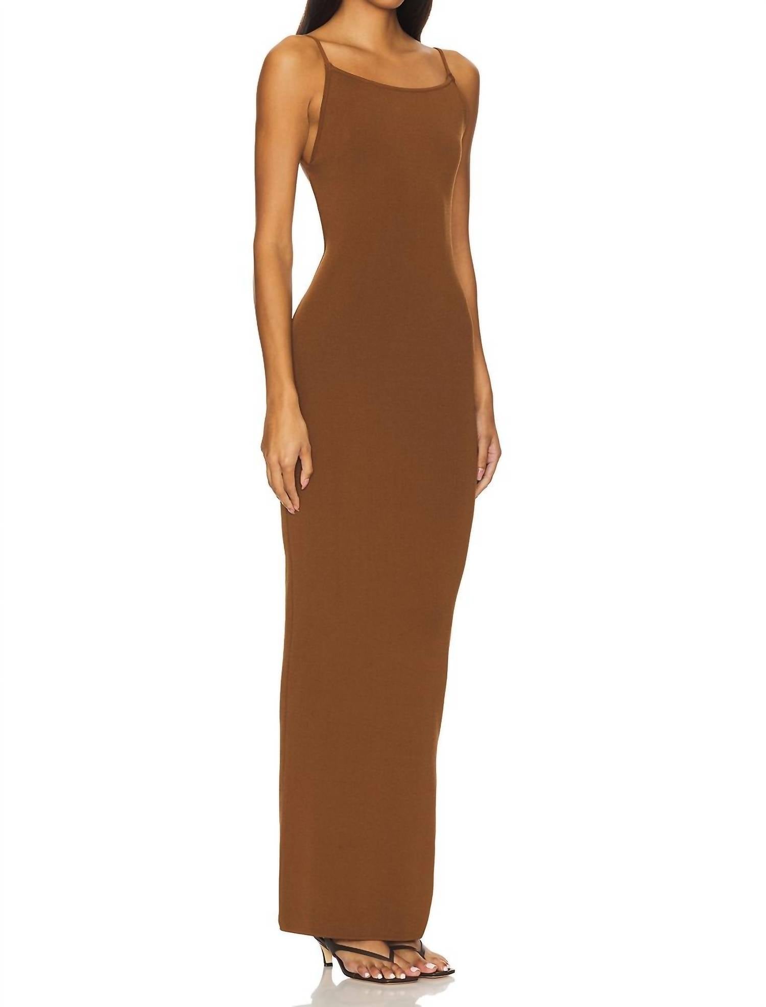 A maxi dress that is just as cute as it is comfortable. This piece is crafted from a soft, lightweight knit blend of viscose, nylon, and elastane, featuring a delicate unlined construction and a secure back tie-up closure. Designed for easy care with hand washing, it offers a comfortable, flexible feel that's perfect for warm-weather styling.
