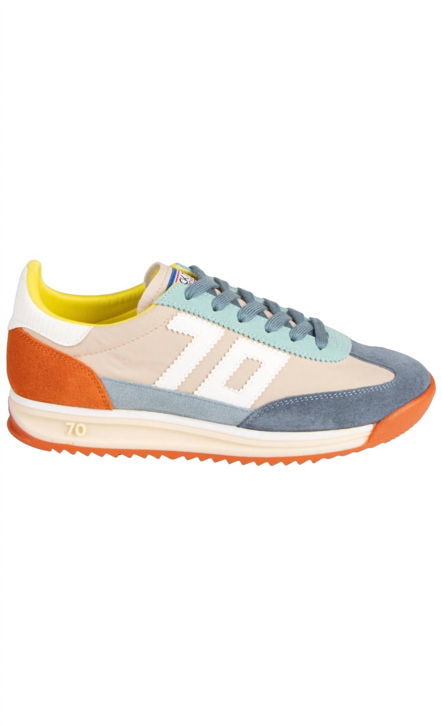 Estilosos, confortáveis e com suporte. Estes tênis esportivos atendem a todos os requisitos. Entre no estilo atlético de inspiração retrô com o Tênis Feminino Barkley Jogger da Back 70 na vibrante Multi Jeans Laranja. Confeccionado com uma mistura de camurça elegante, couro artesanal e cabedal em tecido, este calçado combina a nostalgia dos anos 70 e 80 com o estilo esportivo moderno. O salto plataforma de 3,1 cm adiciona um pouco de altura, enquanto o solado de borracha durável garante um uso duradouro. Com palmilha de espuma removível, cadarços trançados de qualidade e meia acolchoada, este tênis promete conforto e estilo, perfeito para ocasiões fitness ou casuais de streetwear.