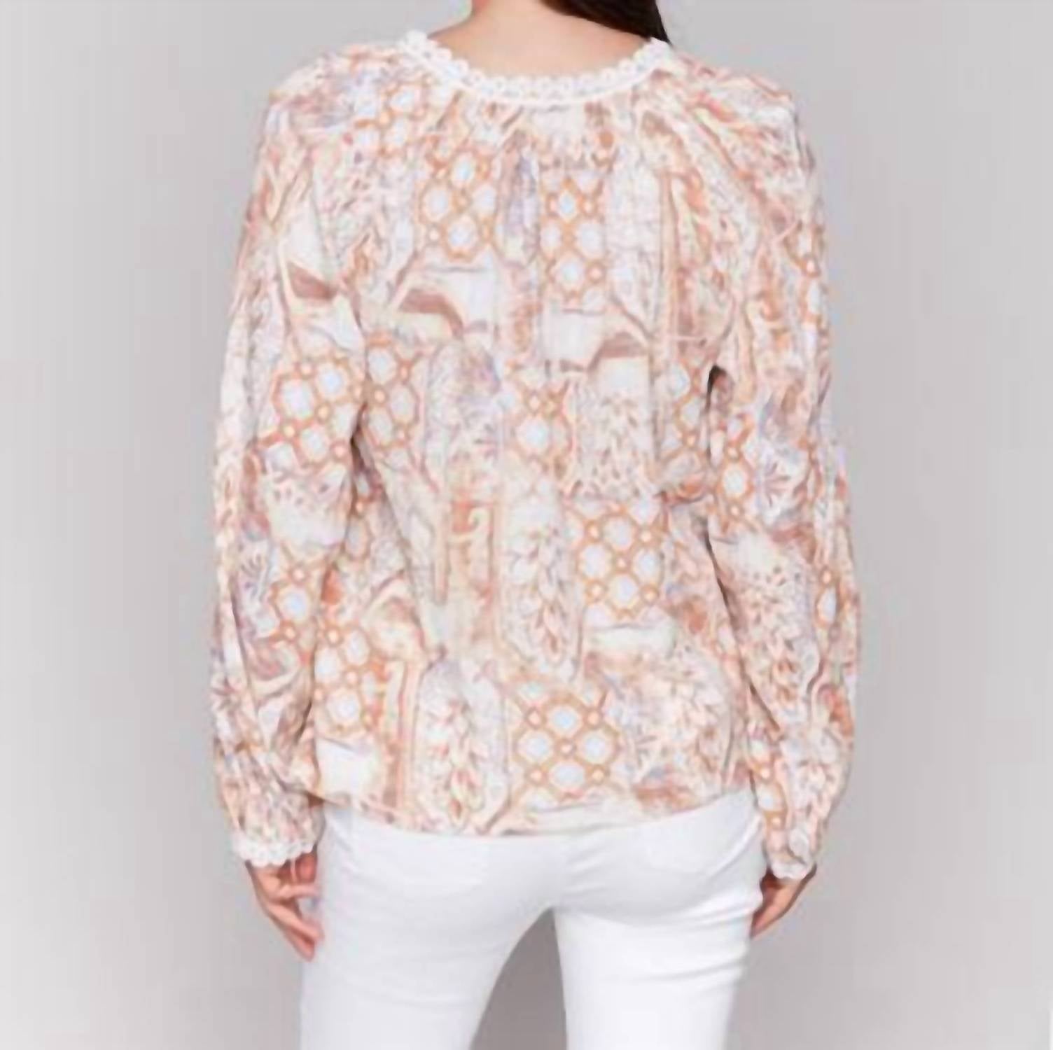 Combine isso com seus jeans e chinelos favoritos para sua próxima noite entre amigas. Apresentamos a blusa raglã de manga comprida da CHARLIE B, uma escolha estilosa em um tom vibrante de mamão, perfeita para o Halloween. Esta blusa feminina, com decote em V, é confeccionada em rayon luxuoso para um ajuste confortável. Com um estilo estampado, oferece um fecho pull-on refinado para um uso sem esforço. Lavar à máquina e secar no varal para manter a cor vibrante e a maciez. 80% rayon e 20% linho.