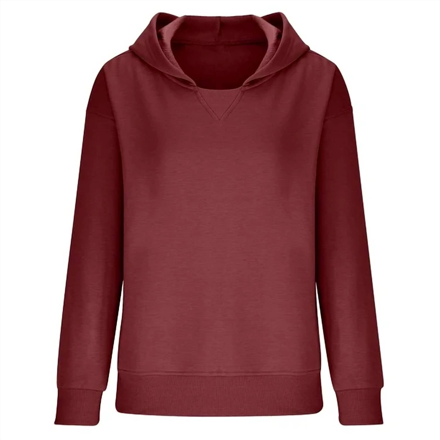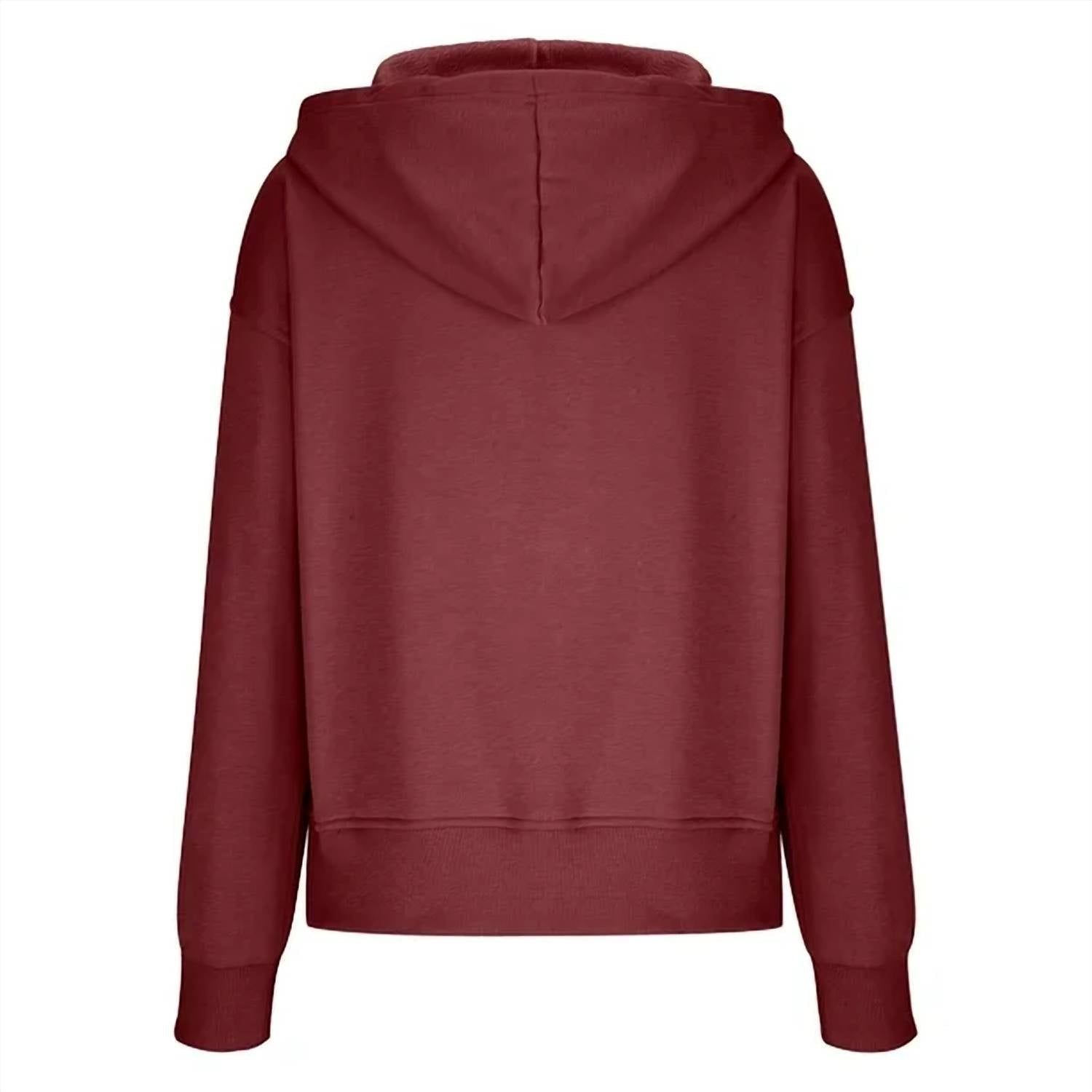 Não importa se você está correndo pela cidade ou relaxando em casa, este moletom serve para ambos. Envolva-se em conforto e aconchego com o moletom com capuz da Lily Clothing, perfeito para acampamentos de outono e confraternizações de Ação de Graças, em um tom vinho intenso. Este moletom feminino é feito de lã macia, com mangas compridas e gola com capuz para maior aquecimento. Com seu caimento solto, o design pull-on é realçado por fendas laterais, proporcionando facilidade de movimento. Aproveite esta peça essencial com estampa lisa nos tamanhos P a GG.