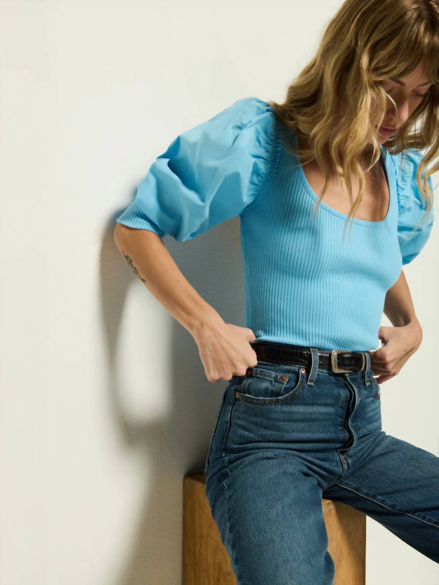 Pair this with your favorite jeans and slides for your next girls night out. The Corynn Top by Nation LTD is a form-fitting blouse crafted for confident style, rendered in a dreamy Day Dream hue. It features three-quarter poplin puff sleeves, a polished scoop neckline, and is made from 100% organic Peruvian cotton for a soft, midweight feel. Material: Cotton. Closure: Pull-on. Care Instructions: Machine wash and line dry. Made in Peru.