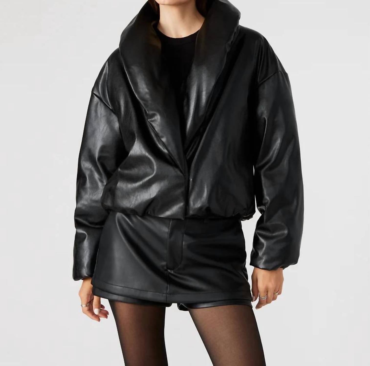 Aconchegante, fofo e atemporal. A jaqueta puffer que vai te manter aquecido a estação toda. Apresentamos a Jaqueta Evy STEVE MADDEN, uma fusão elegante de estilo e praticidade. Esta jaqueta puffer apresenta uma gola xale de couro vegano texturizado, adicionando um toque de luxo, enquanto seu fecho magnético garante aquecimento e praticidade. Com 60 cm de comprimento, é feita de 100% poliuretano e deve ser lavada à mão. Perfeita para quem busca elegância e funcionalidade.