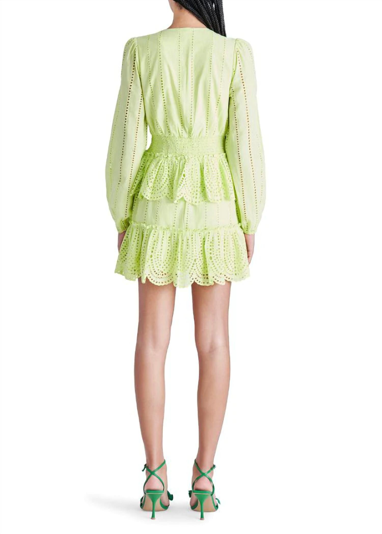 O tipo de vestido prático e elegante que você vai usar durante toda a temporada. Vestido curto com babados e ilhós. Decote em V. Cós estilo bata que contorna a cintura. Veste. Totalmente forrado. 100% algodão. Lavar à mão com água fria separadamente. Não usar alvejante. Secar na horizontal. Passar a ferro em temperatura baixa, se necessário. Tamanho Pequeno: Ombro 34", Busto 34", Cintura 25", Comprimento 32,5". Tamanho Médio: Ombro 36", Busto 36", Cintura 28", Comprimento 33". Tamanho Grande: Ombro 15", Busto 41", Cintura 30", Comprimento 34,5".