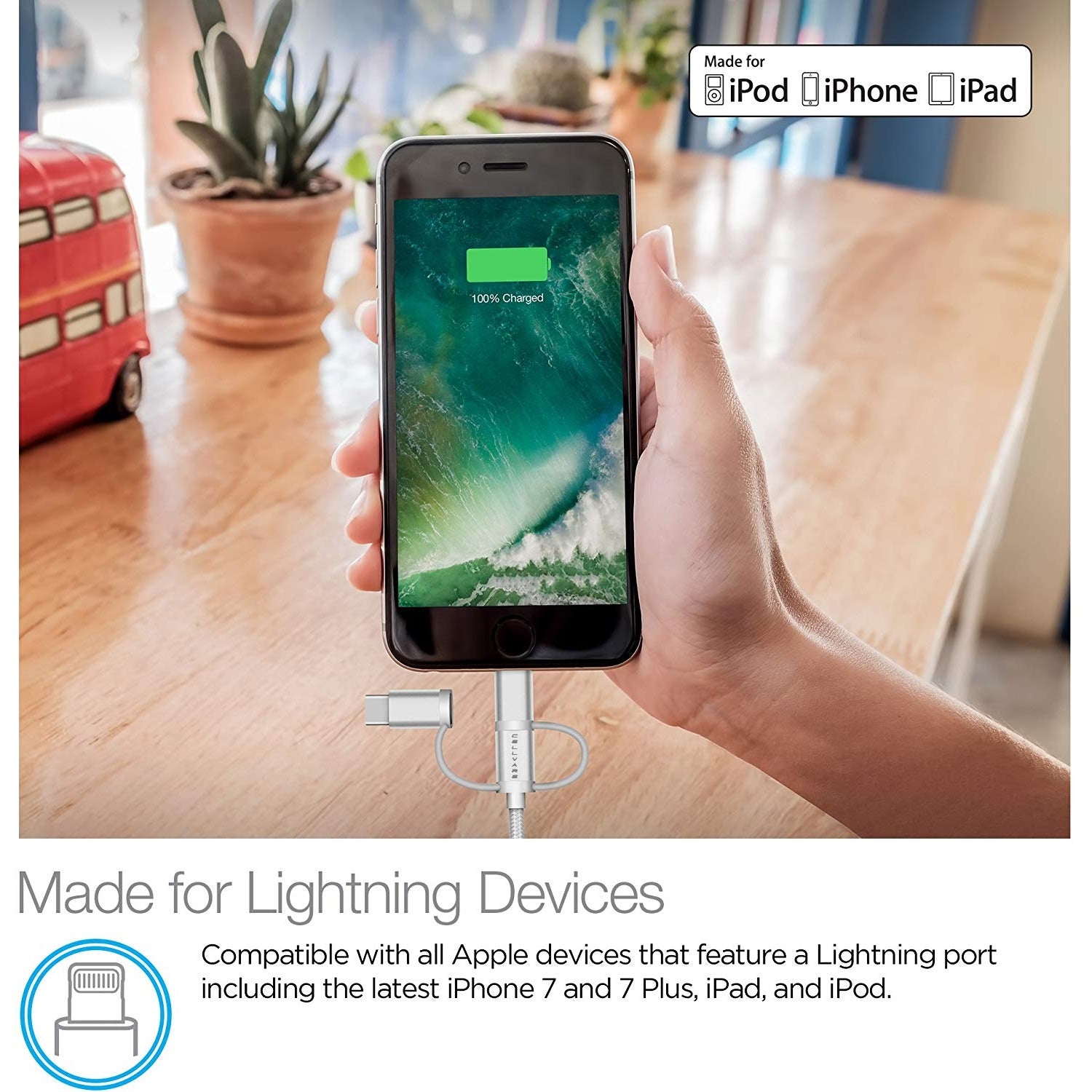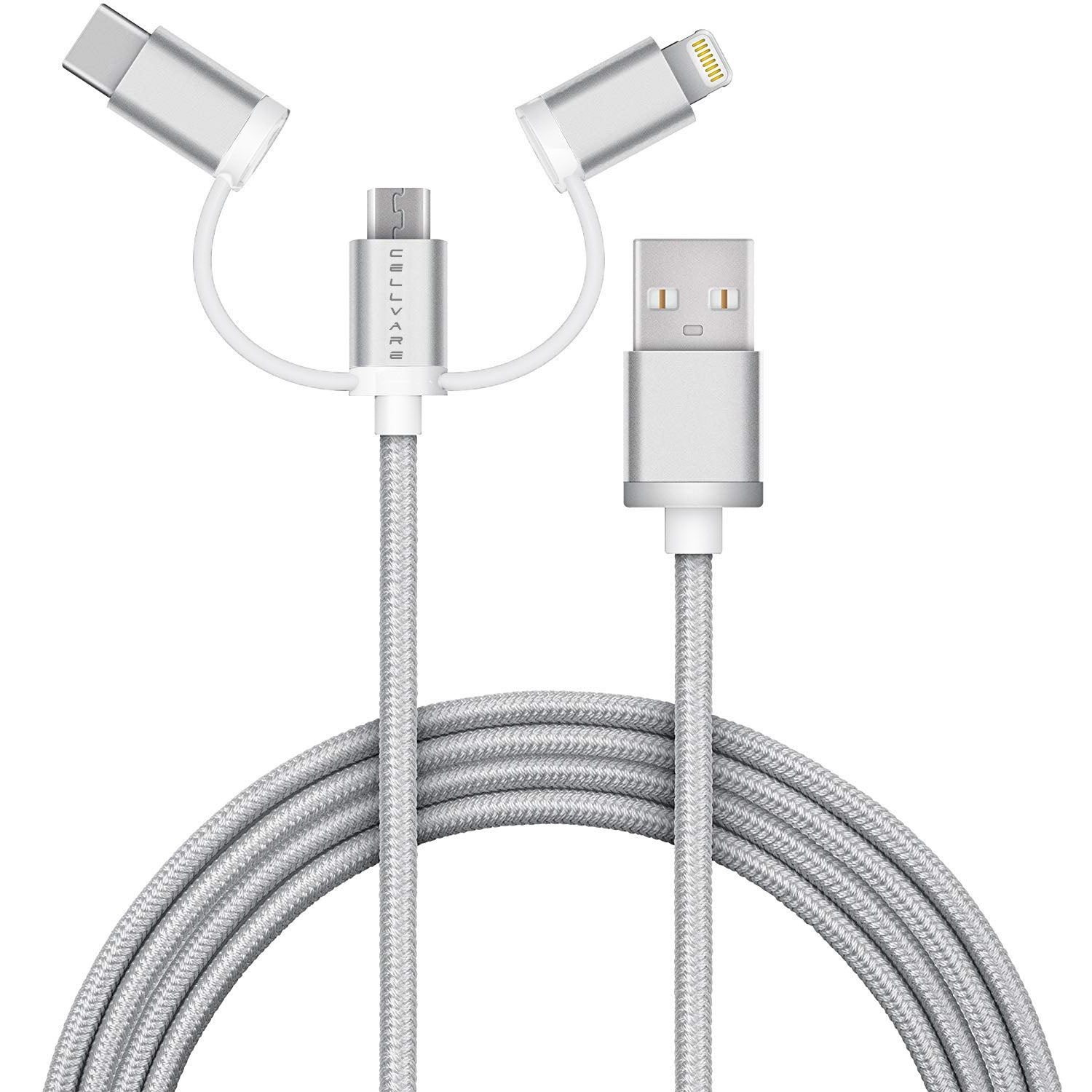 O 3 em 1 fornece um único cabo para dispositivos USB-C, iPhone e Micro USB. Adaptadores integrados oferecem transformações rápidas e perfeitas, mudando o conector do cabo de Micro USB para iPhone para USB-C em um piscar de olhos. Cabo redondo estendido de 6 pés ou 1,82 metros. | O companheiro de viagem perfeito: Não há necessidade de carregar três cabos de carregamento diferentes, basta pegar o híbrido e ir. Esta solução tudo-em-um mantém tudo organizado e simples. | Compatível com: iPhone 11 Pro, 11 Pro Max, 11, X, Xs, 8 / 8 Plus / 7 / 7 Plus / 6 / 6 Plus / 6S / 6S Plus / SE 5 / 5S e iPad / iPad Mini / iPad Pro, USB Micro para telefones Android e acessórios sem fio e USB Tipo C. Também compatível com o Google Chrome Book Pixel / Pixel C de 2015. Compatível com a maioria dos dispositivos Samsung Galaxy. | Segurança e Carregamento Eficiente: Cobre de alta qualidade com cabo trançado de nylon, o que o torna durável. Suporta mais de 10.000 dobras e passou por diversos testes para garantir que todos os nossos cabos sejam extremamente sólidos e livres de materiais nocivos. 100% seguro de usar para garantir a segurança de você e de seus dispositivos. | Qualidade Premium: Cabo de qualidade premium fabricado pela Cellvare para seus dispositivos.