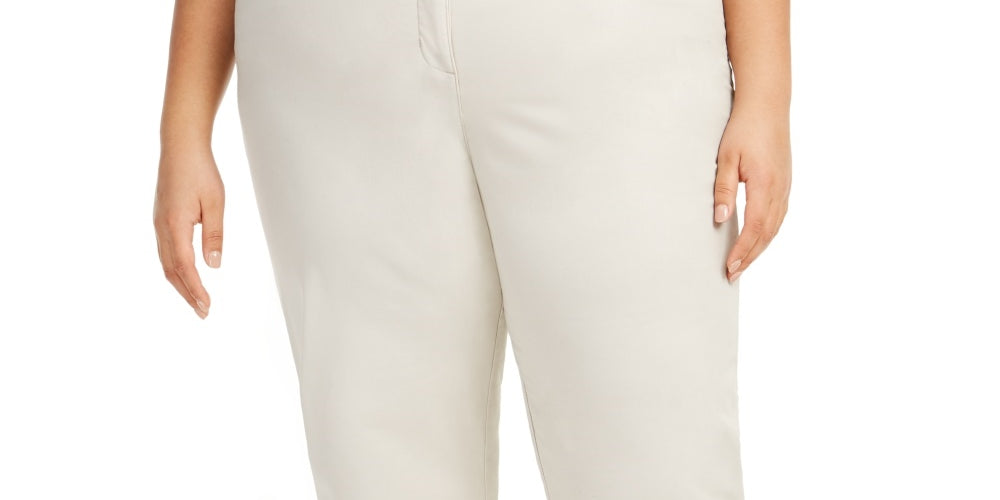 Comprimento interno aproximado: 21" | Cintura média | Fecho de zíper e botão; passantes para cinto | Bolsos de fenda na frente; bolso embutido atrás; acabamento de botão nos punhos | Algodão/elastano