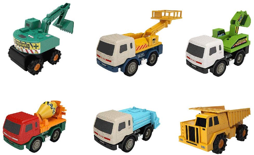 O Power Group de 6 peças leva qualquer criança a se aventurar em construções pesadas. O plástico durável de alta qualidade torna estes caminhões resistentes! Parafusos e hastes de metal genuínos minimizam o desgaste causado por brincadeiras ativas. | O conjunto inclui um caminhão de lixo, uma escavadeira elétrica, uma escavadeira, uma betoneira, uma empilhadeira e um caminhão basculante. Remova entulhos pesados, cave pedras e terra, estabeleça uma fundação, coloque seus trabalhadores em lugares altos – estes caminhões ajudam seu filho a construir seu projeto em um piscar de olhos! | Os caminhões são feitos com personalidade para combinar com os de verdade. Marcações, cabines e carrocerias realistas e rodas grandes e grandes que aderem à terra garantem horas de diversão!