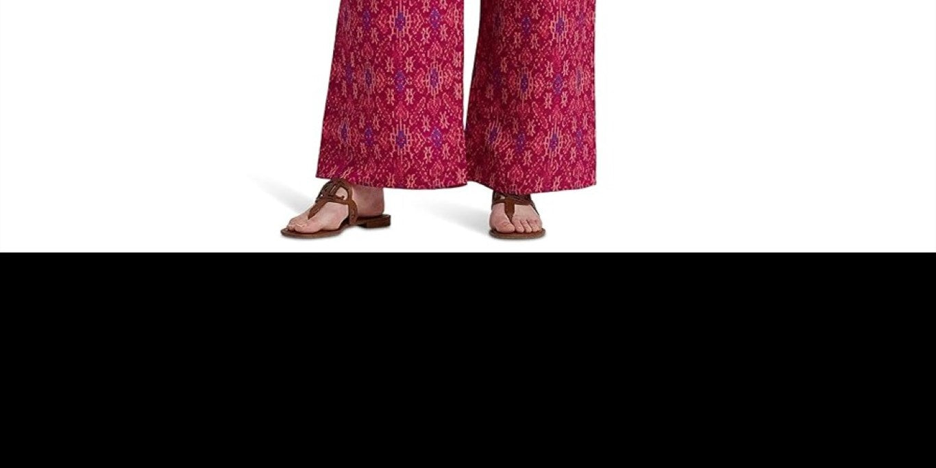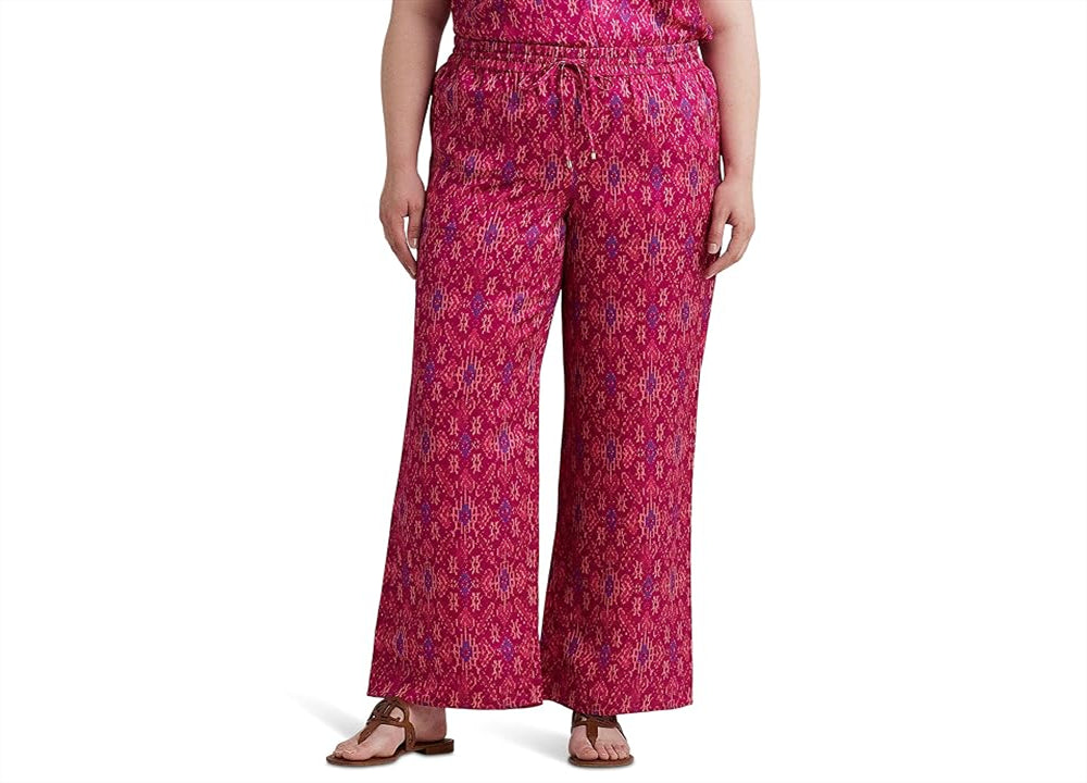 ; Quando você deseja adicionar um toque charmoso ao seu look casual | opte pelas calças de perna larga Ralph Lauren Plus Size Geo-Print Satin Shantung, que são projetadas em um tecido suave e brilhante com padrões geométricos atraentes em toda a peça, combinados com motivos complexos | Silhueta de perna larga | Cintura elástica com fecho de gravata ajustável | Dois bolsos para as mãos | 75% viscose | 25% linho