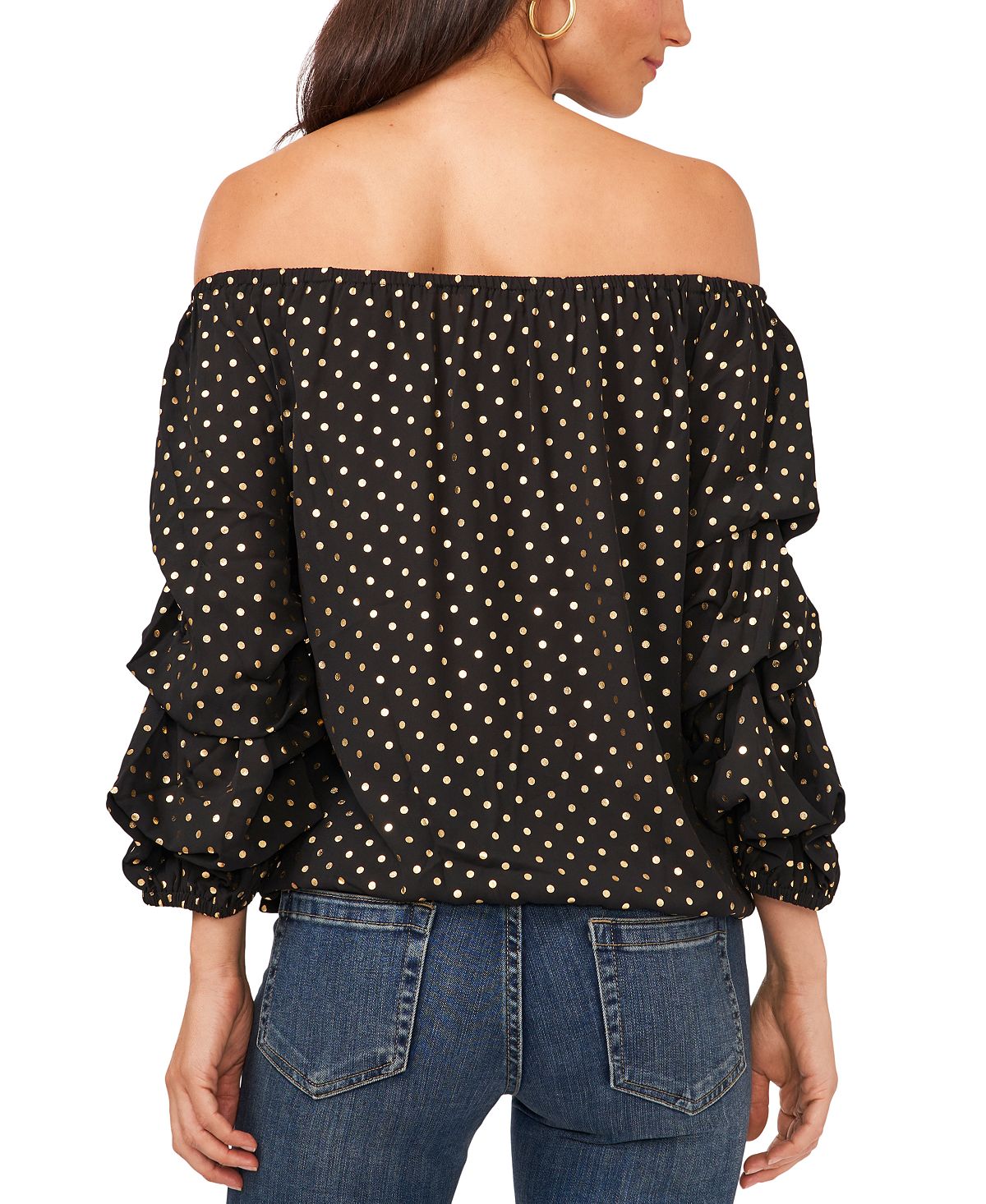 Vince Camuto Blusa feminina de bolinhas com ombro de fora e manga bolha, preta, tamanho extragrande