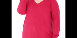 Karen Scott Suéter feminino plus size com decote em V rosa escuro tamanho 1X