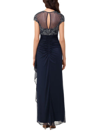 Vestido de noite longo com contas XSCAPE feminino, azul, tamanho 16