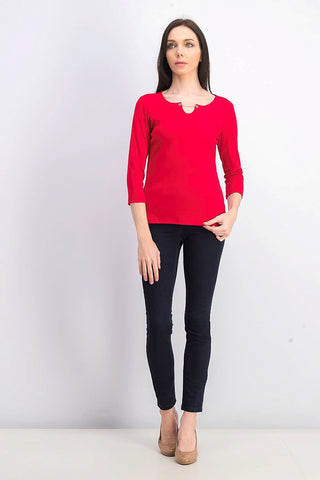 Karen Scott Blusa Feminina Manga Três Quartos Vermelha Tamanho P