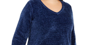Karen Scott Suéter Feminino Plus Chenille Gola V Azul Tamanho 0X