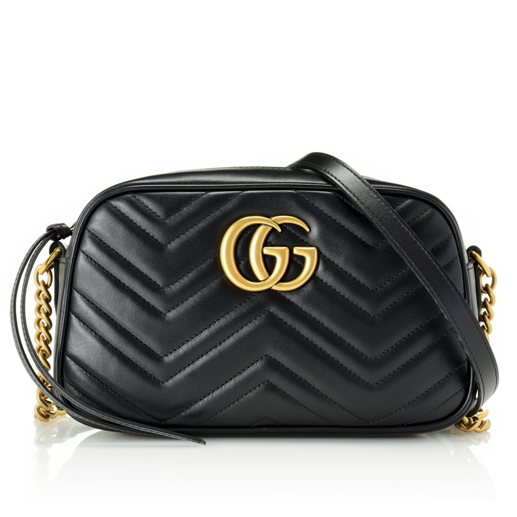 Gucci Mini GG Marmont Matelassé Chevron Camera Bag — Black