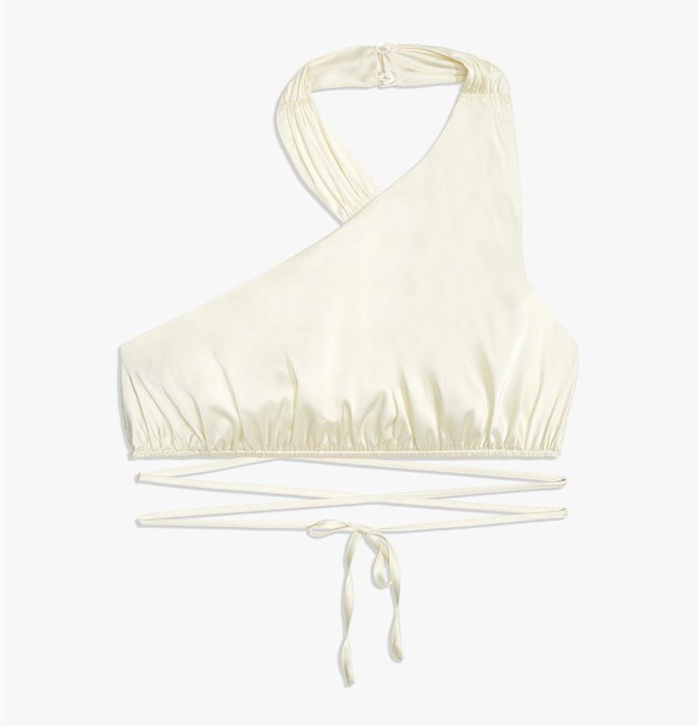 Top Halter Charmeuse Stretch de Gola Alta Baunilha Tamanho X-Grande