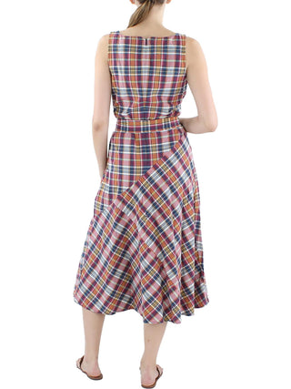Vestido midi de algodão xadrez Madras Lauren Ralph Lauren feminino, tamanho 16
