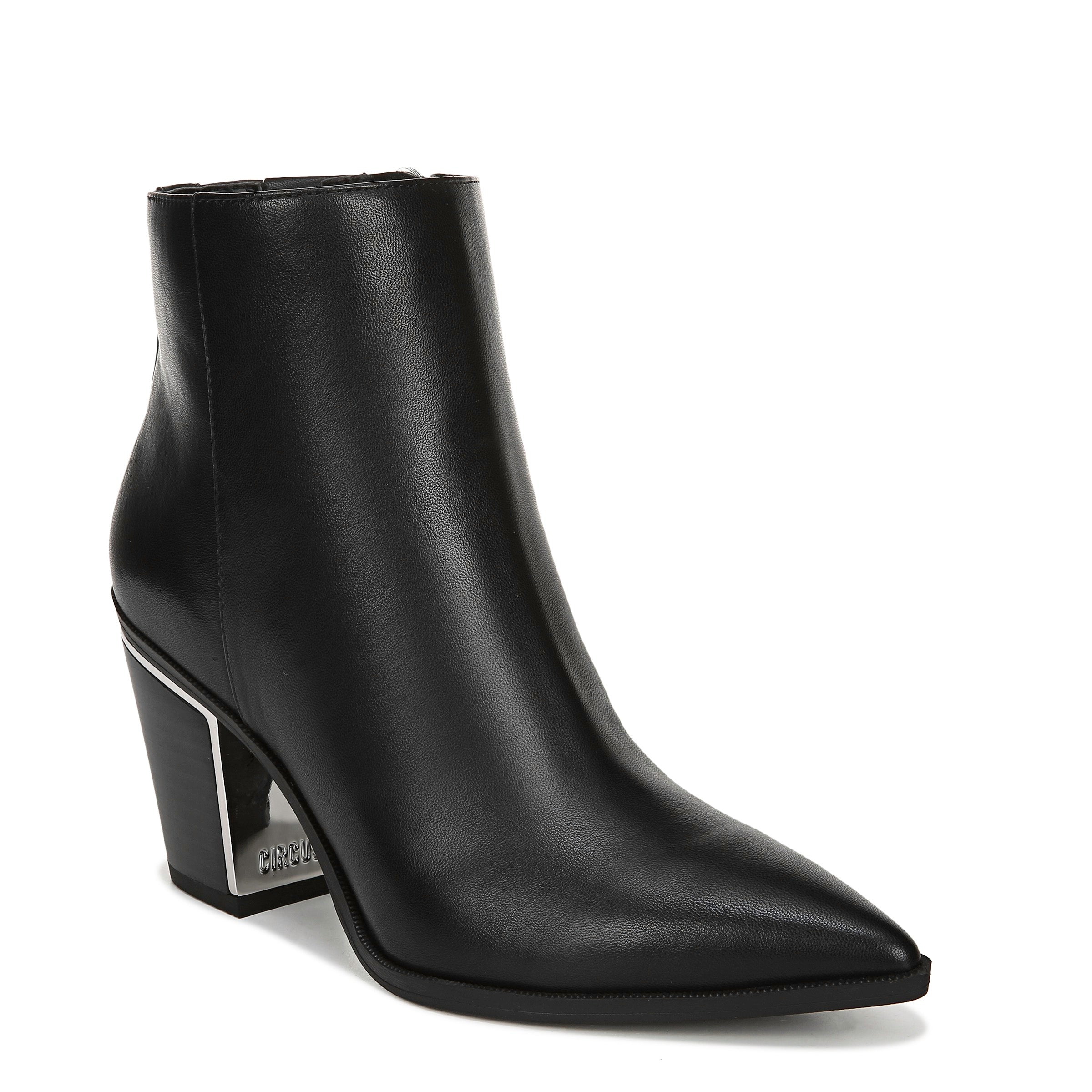 O ousadia encontra a elegância nas botas Cal ultrachiques da Circus by Sam Edelman, que combinam um toque metálico espelhado e uma silhueta elegante com um salto bloco moderno. | Salto 3 blocos | Botas de bico fino com fecho de zíper no tornozelo interno | Detalhes metálicos no calcanhar | Cabedal sintético; forro sintético; sola sintética | Importado