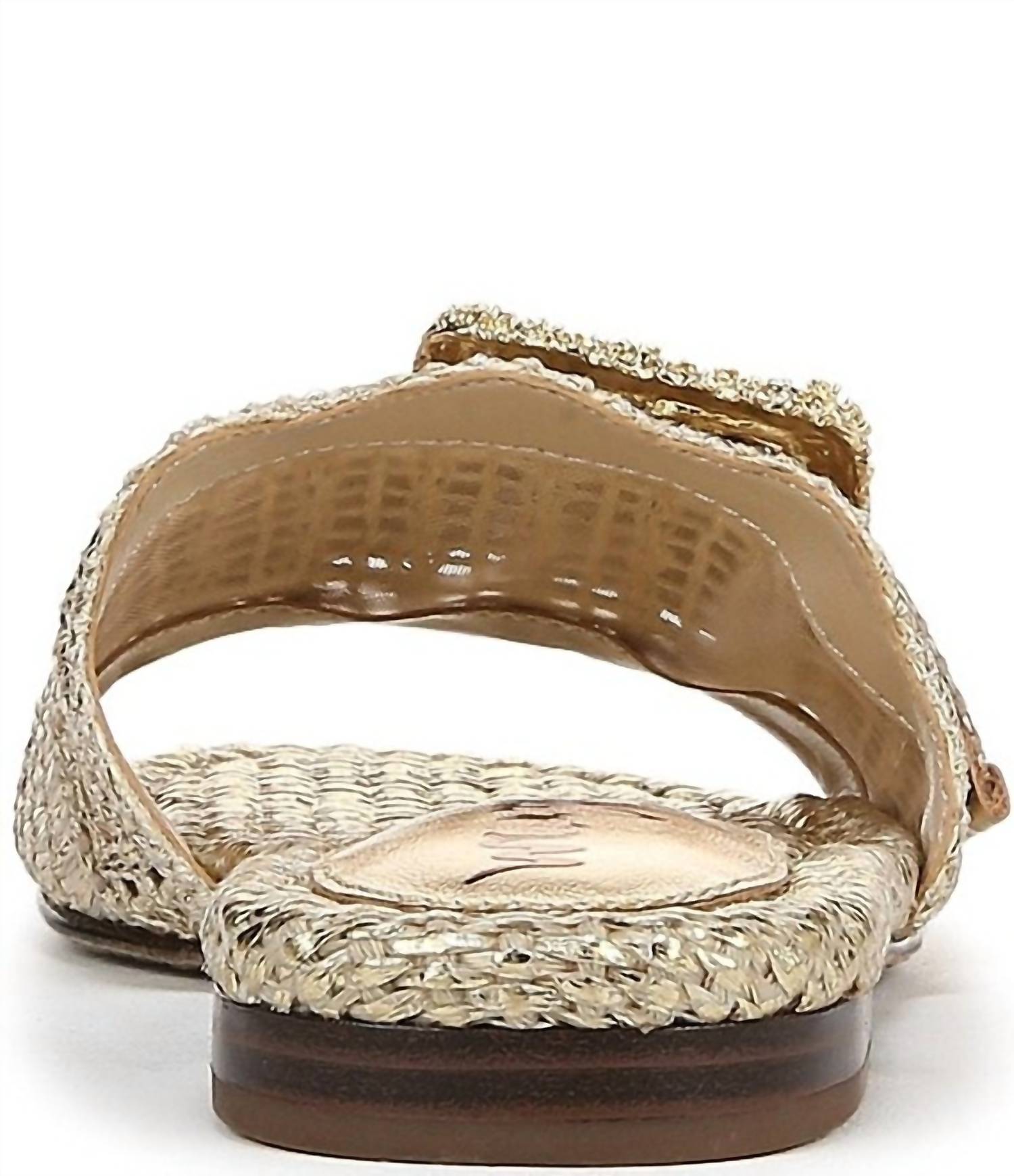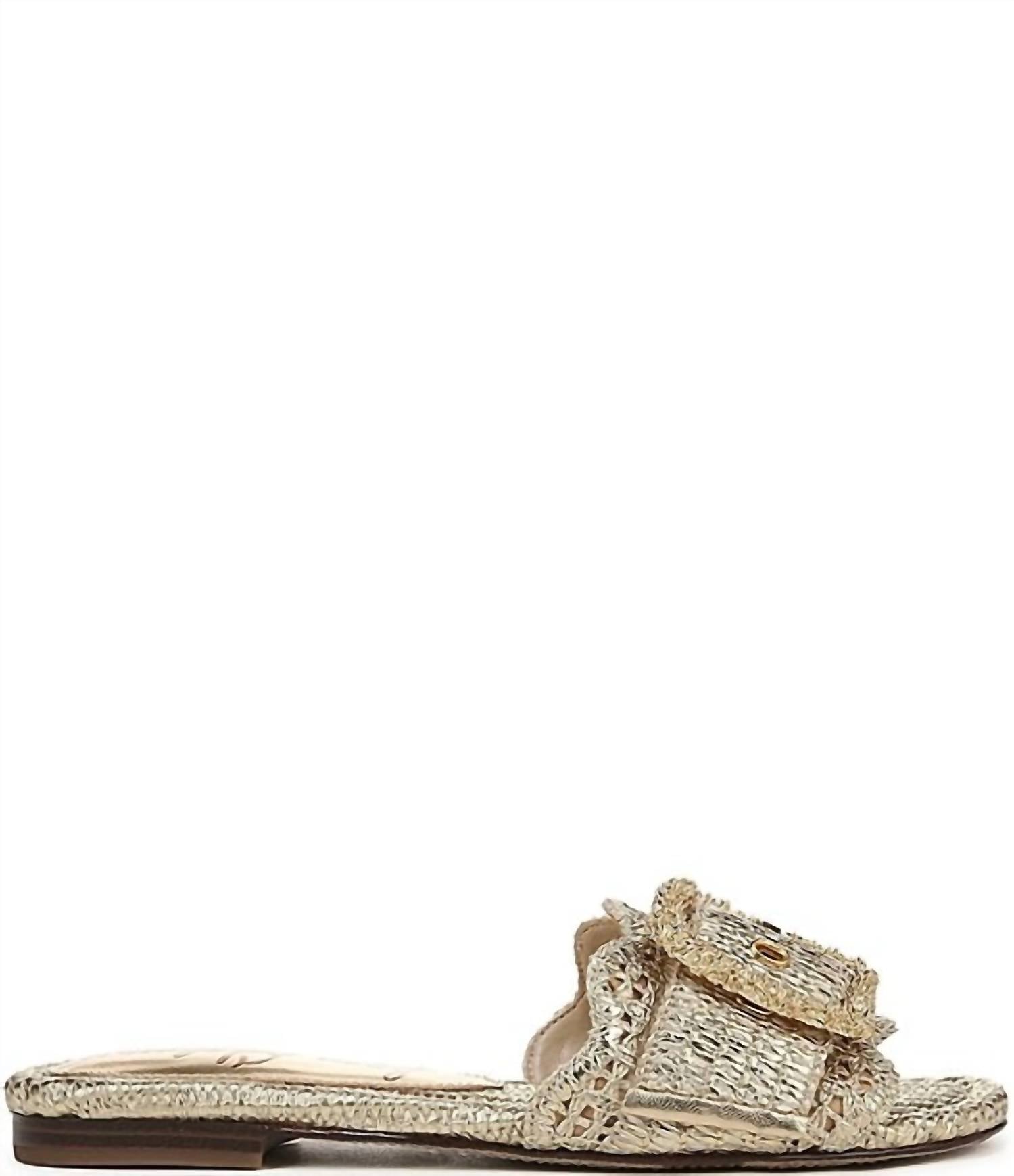 Clássico e fofo, perfeito para usar o dia todo. Adoramos esta sandália. A sandália feminina Bambi Slide da Sam Edelman combina luxo e conforto com uma fivela grande e ornamentada e cabedal em ráfia metálica na cor Amber Gold. Com salto plano, apresenta bico arredondado e um prático design slip-on para facilitar o calce. O forro em tecido oferece conforto adicional, enquanto o solado sintético garante durabilidade. Com salto de aproximadamente 1,2 cm, é a combinação perfeita de moda e funcionalidade para qualquer ocasião.