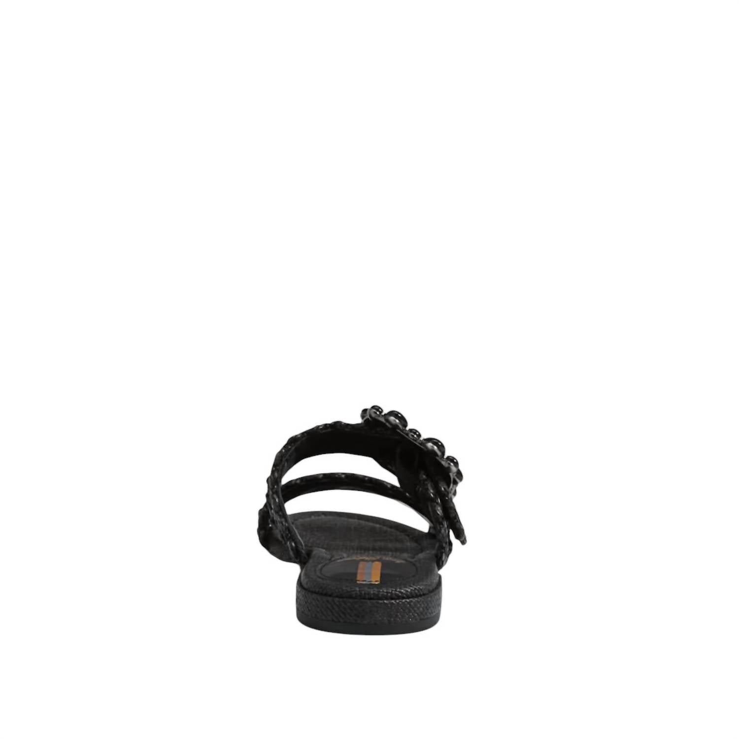 A sandália feminina Elisa Slide da Sam Edelman, na cor preta, combina elegância e praticidade. Com design floral, fivela de armação cabochão e acabamento recortado, estas sandálias leves de borracha oferecem estilo e conforto. Com salto de 1,5 cm e palmilha sintética macia, são perfeitas para looks de primavera descontraídos.