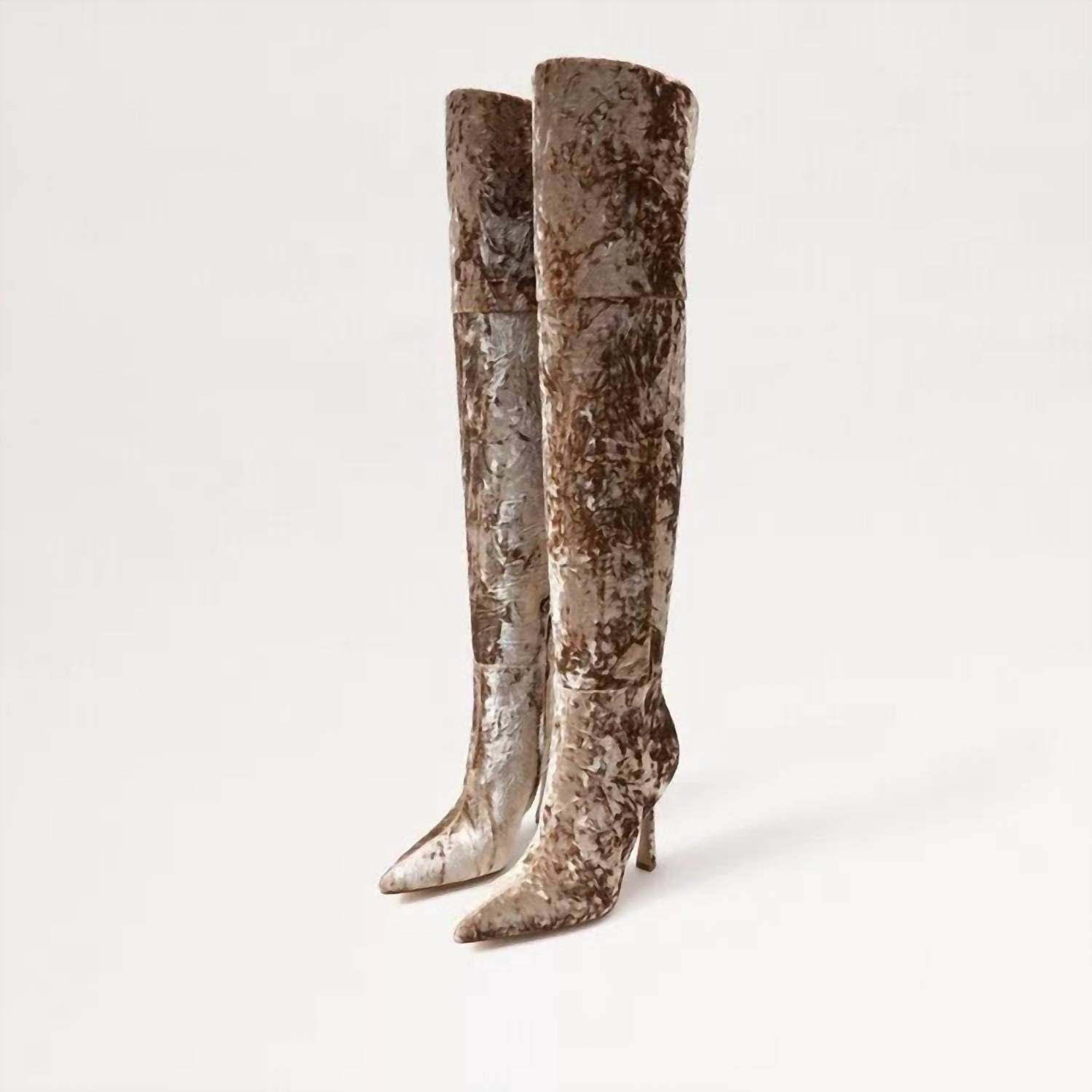 Estas botas estilosas acima do joelho ficam ótimas com jeans, vestidos ou saias. Não tem como errar! Entre na sofisticação com a Bota Feminina Eva Over The Knee da Sam Edelman, confeccionada em uma luxuosa mistura de couro e tecido. Estas botas Prosecco Velvet ostentam um elegante salto agulha de 10 cm e uma elegante biqueira fina, com um cano de 48 cm e uma circunferência da panturrilha de 54 cm. O design sem cadarço garante facilidade de calçar, perfeito para noites e eventos especiais durante o outono. Experimente o máximo conforto com uma palmilha sintética.