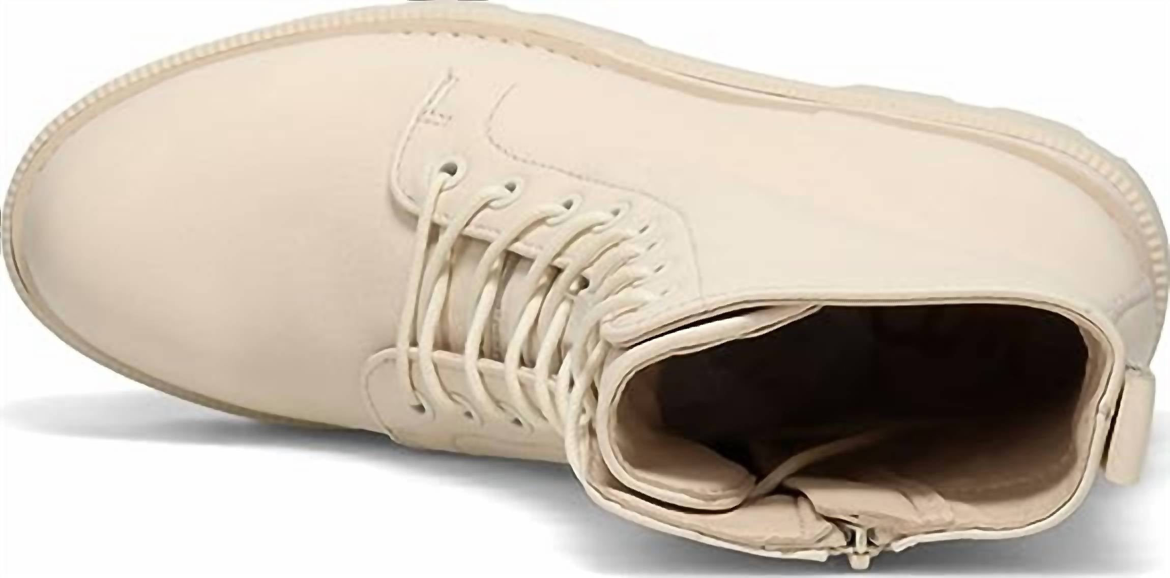A tendência das botas de motociclista veio para ficar e nós amamos especialmente esse estilo. A Bota Plataforma Garret Combat Feminina da Sam Edelman oferece estilo de inspiração militar e conforto moderno. Com salto robusto de 5,7 cm e bico arredondado, estas botas possuem cabedal em couro e acabamento impermeável para uso versátil. O cano da bota tem 14 cm e a circunferência da panturrilha mede 24 cm, proporcionando um ajuste confortável para aventuras urbanas e em trilhas. Fechamento: Cadarço. Perfeita para o streetwear de outono ou viagens, esta bota de combate na cor Modern Ivory adiciona um toque chique a qualquer look.