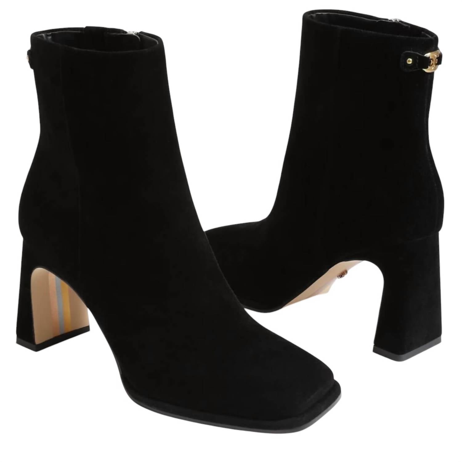 Diga olá à bota perfeita e mais versátil. A altura do tornozelo facilita a transição do dia para a noite. Use-a com sua calça jeans skinny favorita e camiseta para um look mais descontraído, ou combine-a com seu minivestido e jaqueta favoritos para uma saída à noite. Entre na sofisticação com a bota feminina Irie Square Toe Ankle Bootie da Sam Edelman em camurça preta. Confeccionada em couro de alta qualidade, esta bota apresenta uma ponta quadrada que dita tendências e um salto bloco chique de 7,8 cm para um toque de elegância. O prático fecho de zíper e a largura estreita do calçado garantem um ajuste confortável, complementado por um cano de 12,4 cm para cobertura ideal. Perfeitas para qualquer adulto antenado na moda, estas botas combinam perfeitamente estilo e conforto, tornando-as uma adição de destaque ao seu guarda-roupa.