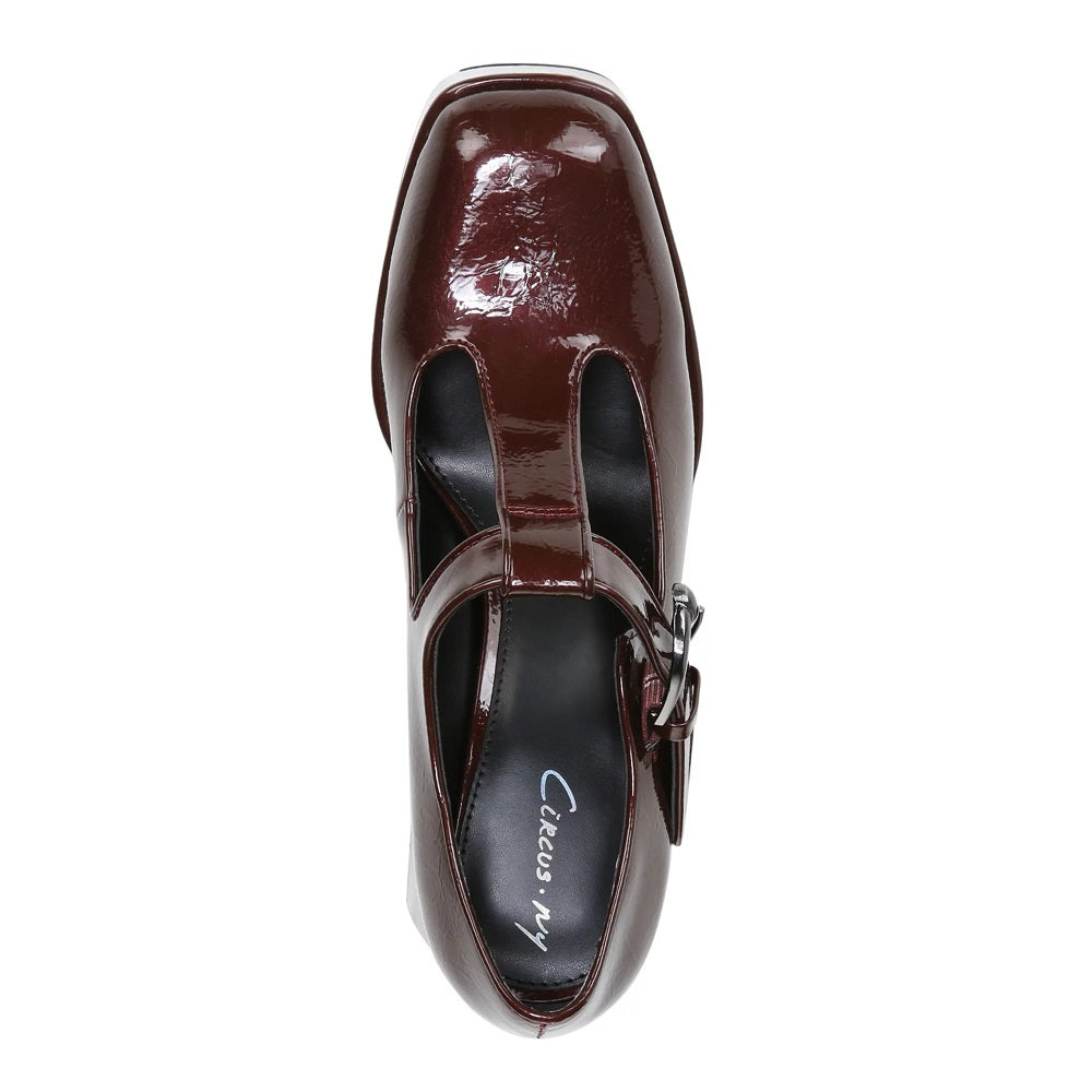 Salto 3-3/4 | Sapatos plataforma com bico quadrado e fivela ajustável na tira em T | Salto bloco curvo | Tamanho real; peça seu tamanho normal | Cabedal sintético; forro sintético; sola sintética | Importado