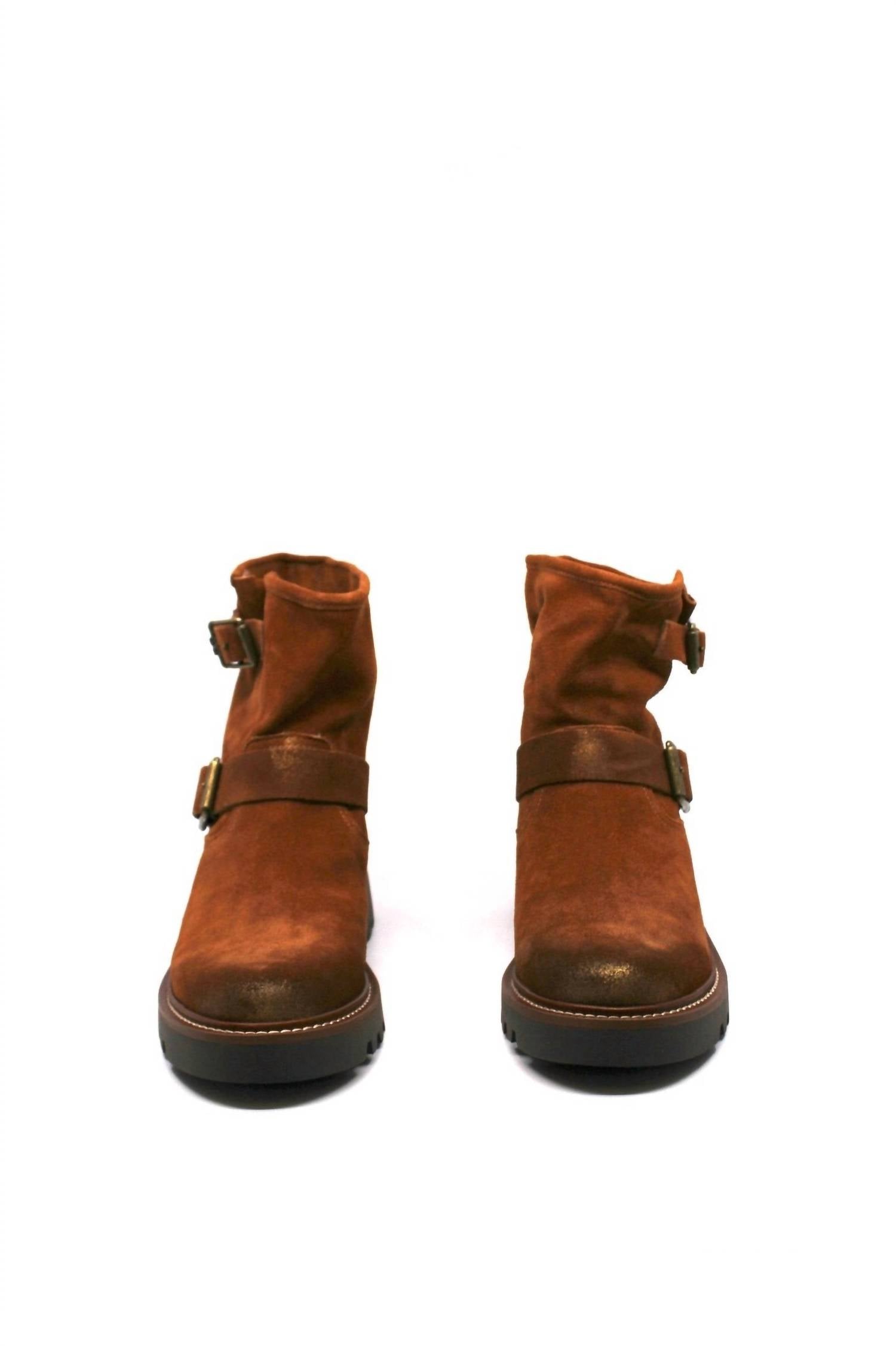 Diga olá à bota perfeita e mais versátil. A altura do tornozelo facilita a transição do dia para a noite. Use-a com sua calça jeans skinny favorita e camiseta para um look mais descontraído, ou combine-a com seu minivestido e jaqueta favoritos para uma saída à noite. Uma homenagem chique à moda dos anos 90 com um toque moderno. Apresenta couro marrom âmbar e ferragens rústicas com detalhes de fivela dupla. Fecho de zíper prático. Salto baixo de 3,3 cm. Bico arredondado para maior conforto. O cano mede 15 cm e a circunferência da panturrilha 28 cm. A palmilha sintética garante conforto duradouro.