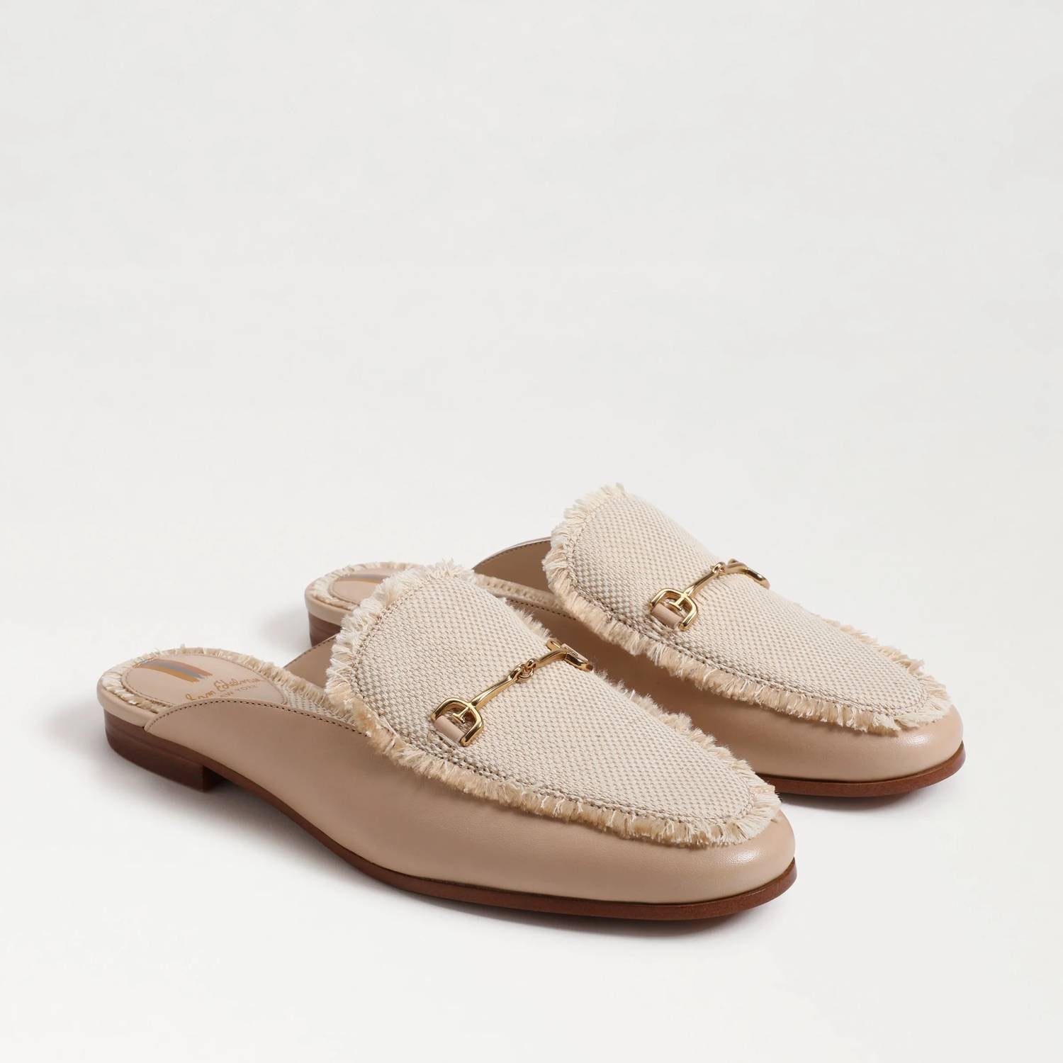 Mergulhe na elegância atemporal com um sofisticado tom Sandshell. A mule de salto baixo apresenta salto de apenas 0,37 polegadas e bico amendoado. Acentuada por um delicado acabamento desfiado e fivela de cavalo para maior personalidade. Um toque de estilo de inspiração vitoriana. Proporcione elegância descontraída a cada passo. Combine perfeitamente elementos de design clássico e contemporâneo.