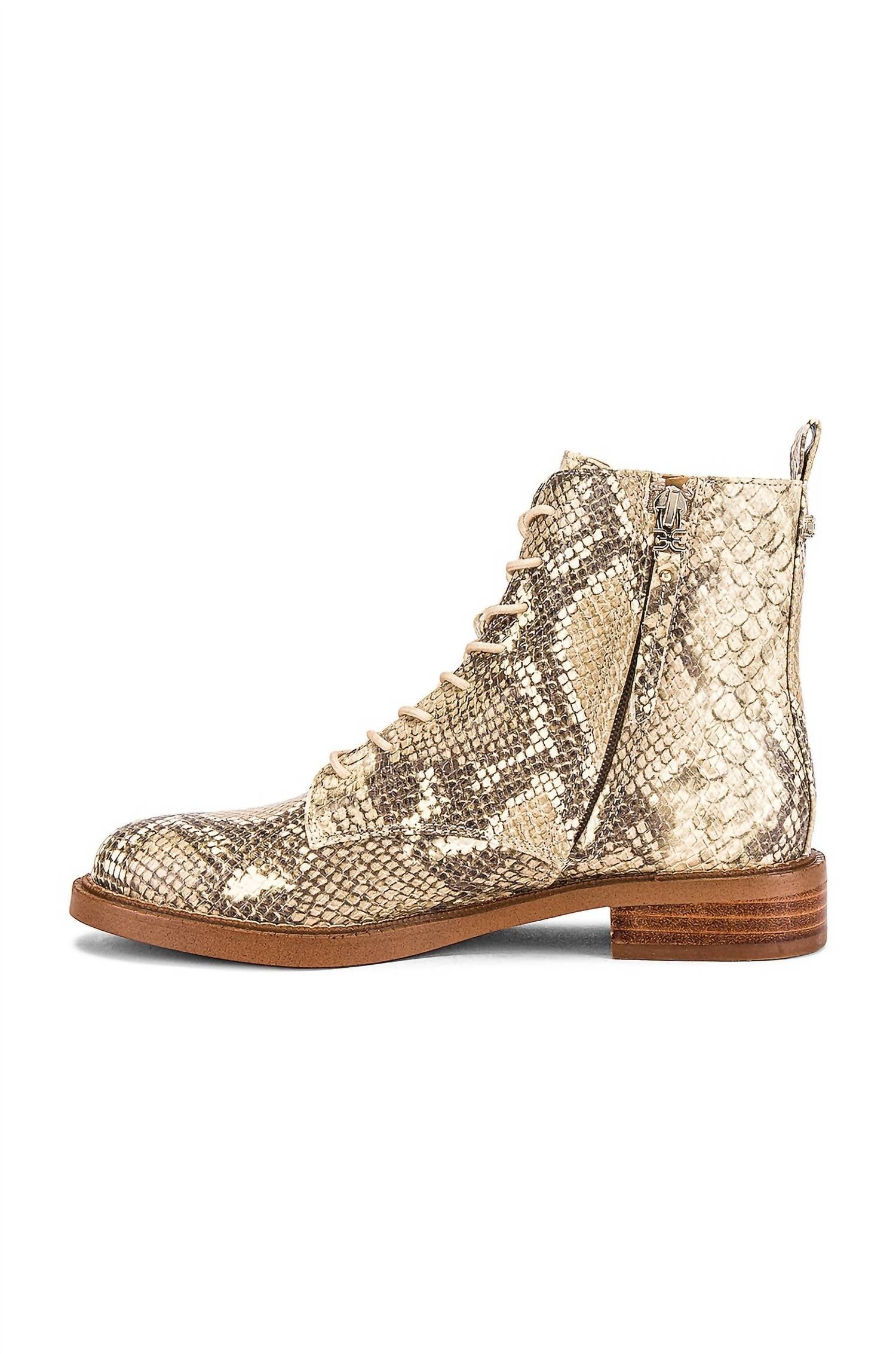 A tendência das botas de motociclista veio para ficar e nós amamos especialmente esse estilo. Aposte no estilo sem esforço com a Bota de Combate Feminina Nina da Sam Edelman, confeccionada em couro sofisticado na cor casca de ovo. Com solado sintético e salto confortável de 3,1 cm, estas botas apresentam um cano elegante na altura do tornozelo com um acabamento exclusivo em relevo de crocodilo na parte traseira. O cadarço frontal e o prático zíper lateral oferecem praticidade e estilo. Ideais para viagens no outono, elas prometem conforto com palmilha sintética e bico arredondado.