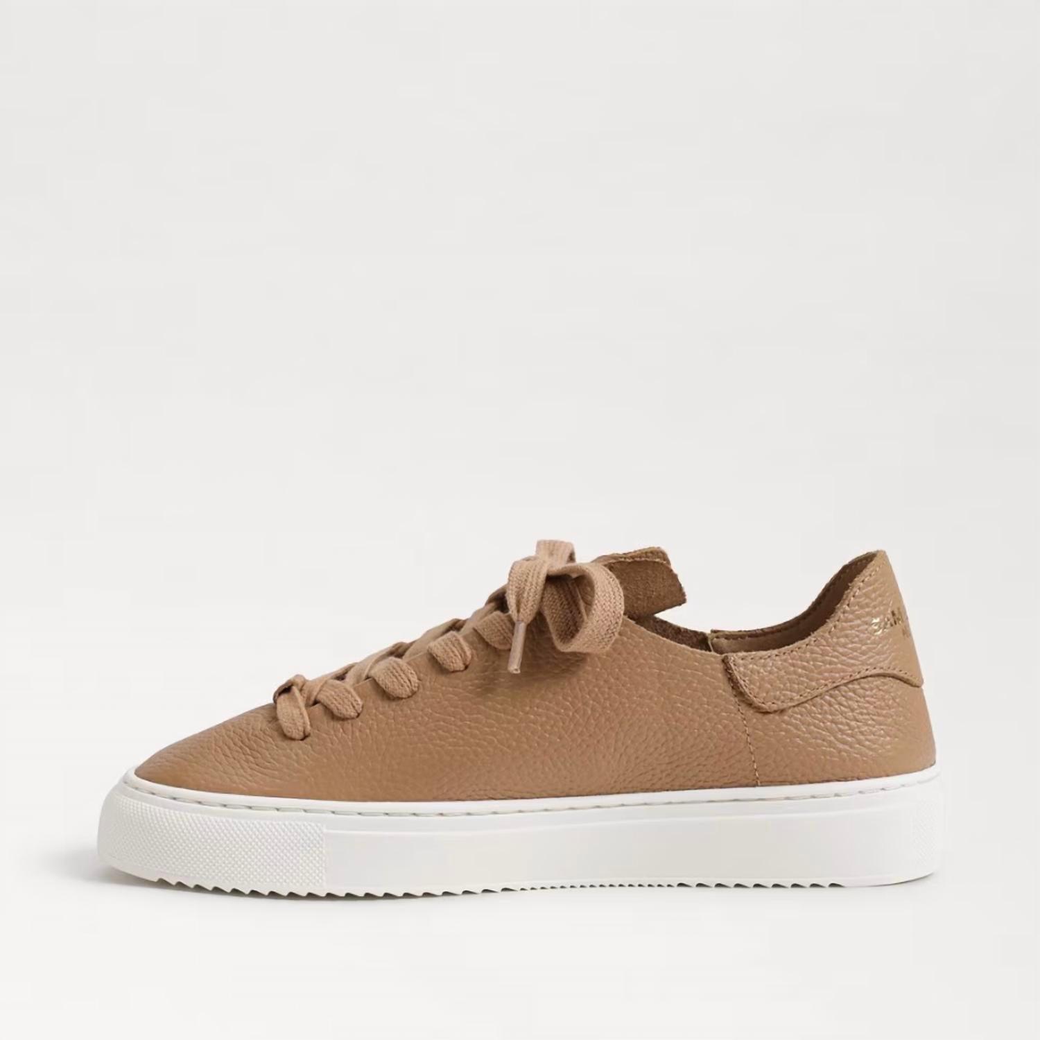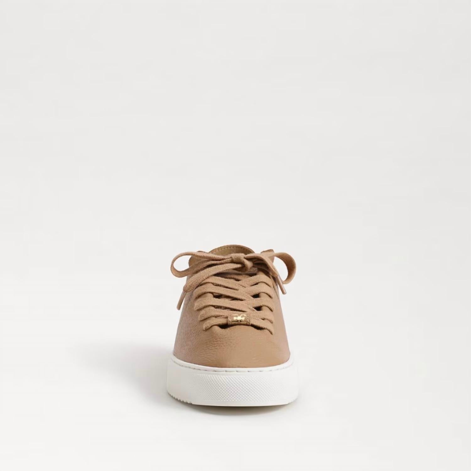 Bonitos, funcionais e confortáveis. Estes tênis atendem a todos os requisitos. Saia com estilo com o Tênis Plataforma Chunky de Couro Camelo Poppy Feminino com Cadarço e Cano Baixo da Sam Edelman. Este tênis tem bico arredondado e é confeccionado em couro luxuoso, proporcionando um visual elegante, perfeito tanto para vestidos quanto para jeans. O salto plataforma de 2,5 cm oferece um salto sutil, enquanto a palmilha sintética garante conforto. Projetado com fecho de cadarço, este tênis é a sua escolha ideal para um look elegante para o dia a dia.