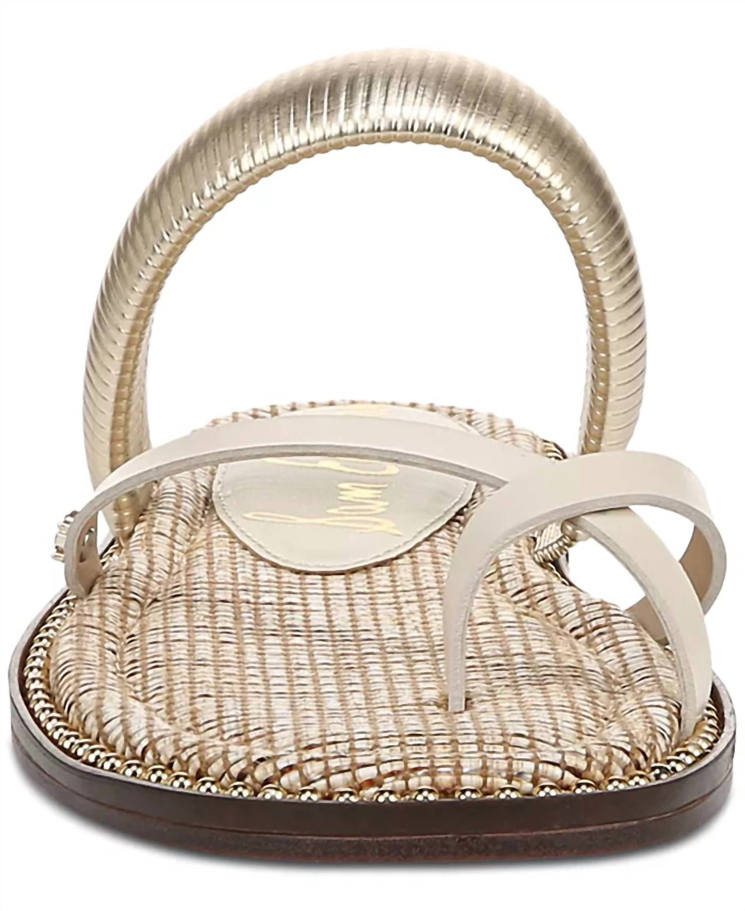 Entre no verão com a sandália feminina Tillie Strappy Slide da Sam Edelman, uma escolha estilosa para qualquer ocasião em um tom marfim atemporal. Estas sandálias apresentam um design aberto e bico arredondado, combinado com um salto plano confortável de 0,375 polegadas. Confeccionadas em couro premium, elas garantem durabilidade, enquanto a palmilha sintética garante conforto o dia todo. Perfeitas para looks casuais e formais, estas sandálias realçam qualquer look com um brilho sutil.
